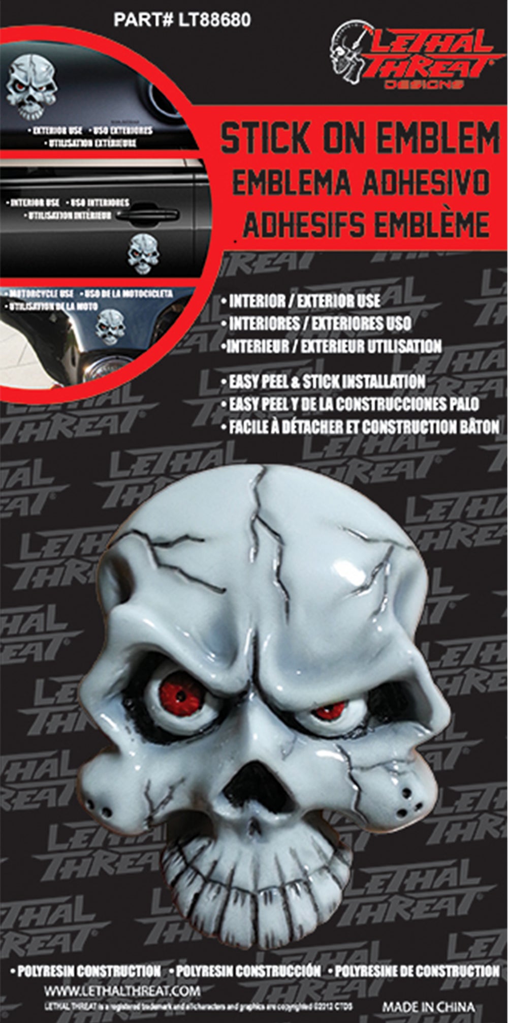 Let everyone know you are keeping an eye on them with our Eyeball Skull 3D Peel 'n Stick Emblem. This sick sticker is unlike any decal you have ever seen. It is highly detailed, hand sculpted and multi-dimensional. Thanks to its Peel 'n Stick backing, you can attach this psycho skull emblem to practically anything.