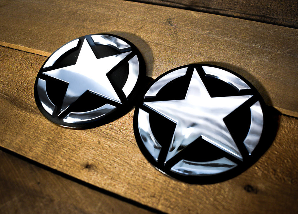 The perfect Jeep Emblem! Inspired by the early Jeep Willys that helped win WW2. The classic military star within a circle will add the custom touch to your ride. A value pack of two, so you can apply both sides of your ride.