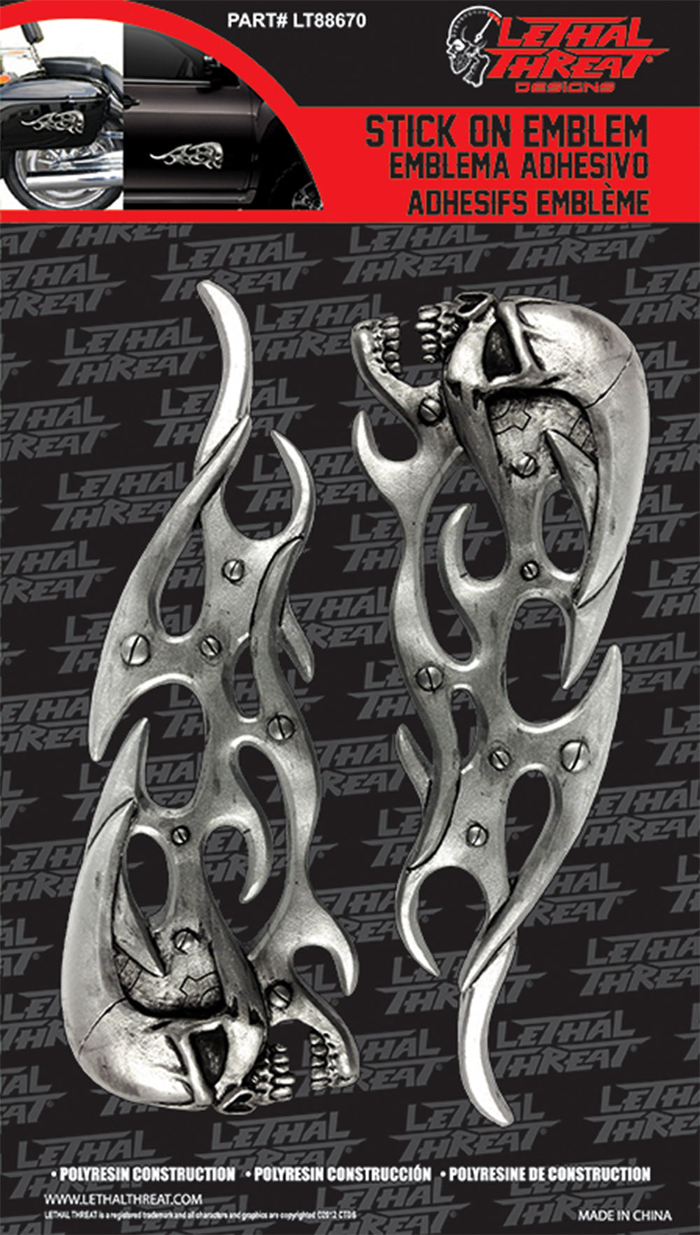 Mechanical / Tribal Skull Flames Lt & Rt 3D Peel n Stick Emblems